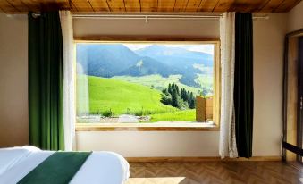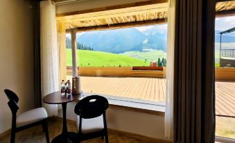 大大的落地窗,還前後都是景,這個民宿是我這次新疆之旅最滿意的,我在這裏發呆可以一個月,哈哈哈,我還建議老闆可以打把傘放門口,賣點咖啡,這個景色絕對值得,老闆這裏吃的也很多,非常方便