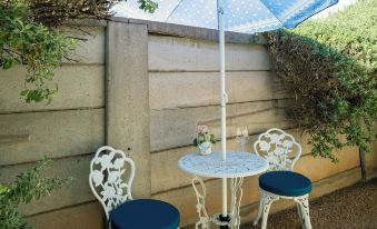 ~Outdoor bistro seating area and bench seating outside of the Villa.