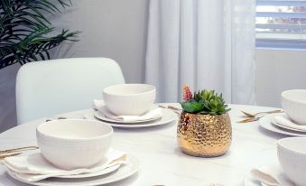 ~Modern fully stocked kitchen with stainless steel appliances and high end cookware. If you enjoy cooking you will love this kitchen. Featuring an organic coffee and tea bar, Ninja blender and a comfortable dining area.