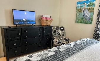 There’s lots to do in Titusville as well. We are in walking distance to a brand new park with swinging chairs overlooking the banks of the Indian River lagoon. Enjoy SpaceEx/NASA/Blue Origin rocket launches from this park or from many local park or at the end of the driveway! Two restaurants offering delicious fare (El Leoncito and Dogs R us) are within walking distance (under quarter mile). If you are in to wildlife, we are five minutes from the Enchanted Forests nature trails and ten minutes from the Merritt Island Wildlife Refuge. We are five minutes from Titusville's Historic downtown shopping area with a live theater. Also close by is a beautiful park and marina with a new splash pad for kids.