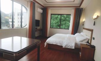 房間乾淨 衞生間很大 自帶的停車場很大又有大樹舒服極了 就在雲中湖邊上 三岔路口附近 全景酒店的隔壁 地理位置好