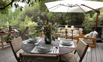 Enjoy a delicious homemade meal under the cafe lights on the dining deck with friends. Pour a glass of wine at Golden Hour while creating memories in the outdoor living room with your loved one. Lovely to also spend some quiet time in the writers nook nestled in the corner of the property with the perfect garden view. Or simply listening to some classic vinyl throughout the house creating the perfect vibes. The firepit is the perfect space to wrap up a fun filled day. The magic of Topanga will trickle through the windows as the natural fills the energy of the space. About pets:Pets allowed: dogs less than 50 lbs per pet (limit one pet total).About checkOut:Check out before 10:00 AM.About children:Children allowed: ages 0-17.About checkIn:Check in after 4:00 PM.About smoking:Smoking is not permitted.About minBookingAge:Minimum age to rent: 21.About events:No events allowed.