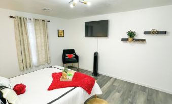 Cute, clean house in a mostly quiet neighborhood. Plenty of space for our family of 5. Great communication from the host. My only complaints would be the lack of smoke detectors in the bedrooms, the gaps in the snap flooring that caused some tripping, and the leftover foods in the fridge. The snacks and coffee bar were much appreciated though when we got in late and left early!