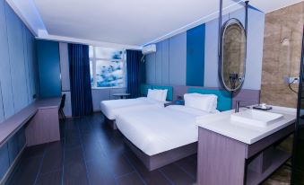 房間很乾凈,和好兄弟四個人一起住,房間很大。很乾凈。前台服務也很不錯。樓下也有很多美食。車站什麼的去市裡也很方便,店長馬子涵服務也很不錯好評!