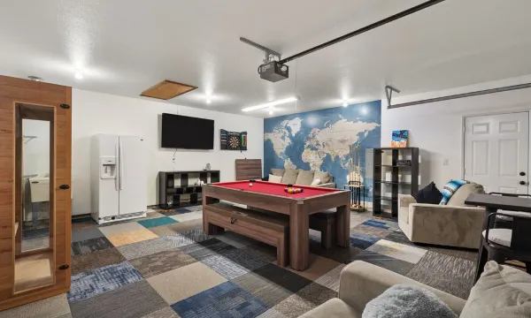 Bring the whole family to this great place with lots of room for fun. Sleeps up to 11. Hot Tub, Pool Table, Sauna, 100% NEW and updated interior, Electric Fireplaces, ALL rooms have built in closet systems, 2 Queen Bed Rooms, 1 King-Bed Suite, ALL NEW bedding and mattresses throughout. 7 NEW TVs (50", 50", 55", 55", 65", 65", 75"), PLUS 1 Gbps of speed with range extender
