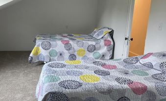 4 bedrooms: 2 single beds 2 queen beds and 1 king bed