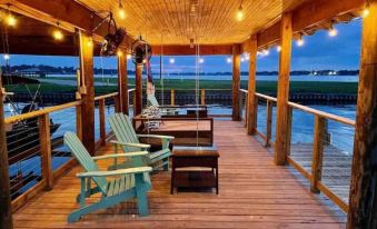 Designed to captivate, Sky View pulls you into its warmth with its expansive rooms, details, and unparalleled view. Featuring a bed swing on the pier, a well-furnished upstairs balcony, and oversized patio, Sky View is meant to draw you outdoors. So grab a drink and find your spot to relax. Whether it's the upstairs balcony or the bed swing on the pier, there's no bad seat in the house, especially as the sun sets over beautiful False River.