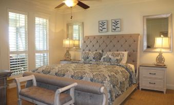 Enjoy the spacious master bedroom with views of the water and an ensuite bathroom complete with relaxing tub to unwind. Catch up on the morning news on the 65 inch Smart TV. Additional bedrooms include a queen guestroom with ensuite bathroom, a king guestroom and a bunkroom that can sleep 6 for the kids. The king guestroom and bunkroom share the 3rd full bathroom so you never have to wait for an available bathroom! Bring your gaming consoles to hook up to the 50 inch Smart TV in the bunkroom.