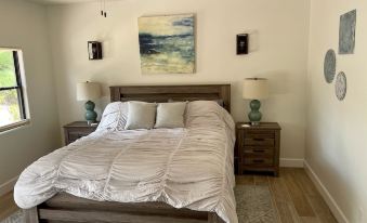 Spacious 1900 sq. ft. Two bedroom / two bathroom home with vaulted ceilings and skylights. Enjoy cozy nights next to the fireplace or relax in the living room watching your favorite shows. Each bedroom features a memory foam King size bed and Smart TV’s. Pull out sofa and high end air mattress allows space for up to 8 guests.