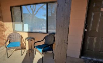 Easy access and lower level unit. Grocery and restaurants within in walking distance. It’s out of the the hustle and bustle of Sedona proper but close to Bell and Court House rocks.