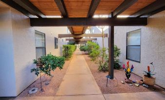 Nicole's condo is in a perfect location with several fabulous restaurants nearby, a cute little grocery store across the street, tennis courts just off the patio, and a nearby pool and hot tub. With all of that, we could not believe how quiet and peaceful this complex was during our stay! The condo was clean, has nice furniture and appliances, and beds are comfortable. Nicole provided so many extras that you don't find most places you rent, such as soap, shampoo and conditioner, k-cups, paper products, spices and cooking spray, etc. There is a covered parking space very close. Nicole provided a picture of the parking space as it is not easily noticeable which space is which initially. The check in and check out process could not have been any easier. Being from the midwest where we keep our house like a meat locker, we were initially surprised that the temperature in the condo was a bit warmer than we were used to. Nicole was kind enough to have the evaporative cooler serviced and offer to set up additional cooling systems for us. She went above and beyond for the sake of our comfort. Turns out we just needed a couple days to acclimate to the Arizona climate and we were just fine! Overall this was one of the best vacations we have ever had and can't wait for our next visit!