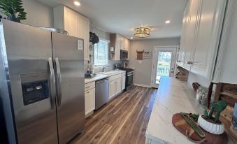 Living room and all bedrooms have their own Roku smart TV, plenty of cozy blankets and pillows, new mattresses and books and games for all ages. Kitchen is equipped with all basic supplies and gadgets for those who like to cook, has a stocked coffee/tea bar and a wine/cocktail area filled with bar accessories (shaker, muddler) and plenty of drink/plasticware. Just bring your favorite cocktail.