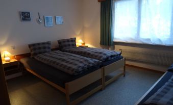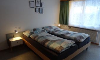 Cozy 3.5-room apartment for 4-5 people (77 m²). The inviting living room features a seating area, TV, DVD player and a south-facing balcony. The modern, enclosed kitchen with a dining table and access to the south-facing balcony is fully equipped, including a dishwasher, Nescafé Dolce Gusto coffee machine, fondue set and raclette grill. Spacious double bedroom and an additional room with a double and single bed. Bathroom with shower/WC and an extra guest WC. Free Wi-Fi is available throughout the house.
