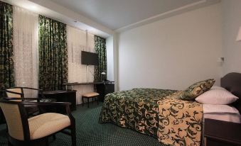 The hotel offers its guests rooms designed in a classic style, blending sophistication with comfort. Stylish furniture, carefully selected for convenience, harmoniously complements the overall interior. Each room is equipped with a modern air conditioning system, ensuring a comfortable stay in any season. For added convenience, minibars stocked with drinks are available, allowing guests to unwind after a long day without leaving their room.
