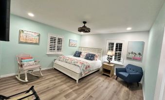 Welcome to your dream retreat! Nestled beneath a canopy of mature oak trees and lush tropical plants, this serene haven offers the perfect blend of tranquility, coastal charm and fun. Just three blocks from the beach, our home invites you to unwind, recharge, and embrace the laid-back lifestyle of the shore.