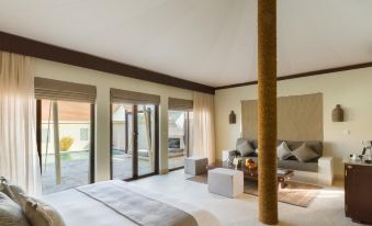 Location and Environment: The hotel is nestled between desert dunes, offering a magical view of sunsets on the dunes, which is a highlight for many visitors. The location provides a surreal desert experience with convenient access via SUV or 4x4 vehicles.