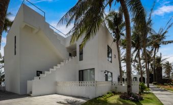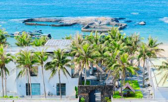 The inn is nestled under a coconut forest and features a white Greek Mediterranean style appearance. It has 19 guest rooms with large floor to ceiling glass windows, 20 meters away from the sea. Lying in bed, you can directly see the clouds and the sea, and the sea is clear to the bottom. There are about ten small fishing boats parked there, and wild seafood comes ashore every day, with a rich variety. There is a spacious courtyard suitable for small weddings, unit building, birthday parties, student gatherings, as well as entertainment such as sailing, snorkeling, paddling, surfing, etc.