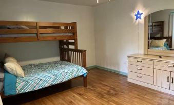 2 bedrooms: 2 bunk beds 1 single bed and 2 king beds