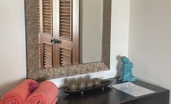 We had a wonderful 8 night stay. Communication with Merryl before arrival was excellent and check in was easy with Necole (and very accommodating to our arrival/departure times) The apartment is just as described and shown in the listing, beautiful. We had 8 great nights of sleep (disturbed only by the chirping tree frogs!) It’s a windy location (whilst we were there) but for us it was perfect, with the shutters open (insect screens in place) and the overhead fans on, there was no need for the A/C