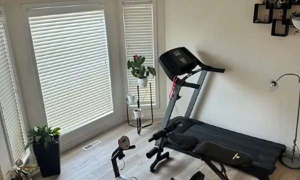 The main level also includes a formal dining room, a dedicated workout area, and a fully functional kitchen with a pantry, ideal for preparing delicious meals. A convenient half-bathroom rounds out the main floor for added ease.