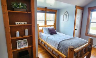 BDRM 2: Twin bunks, single bed, & futon that converts to a full-sized bed. Closet w/ hangers, extra linens/pillows, & 45" smart TV