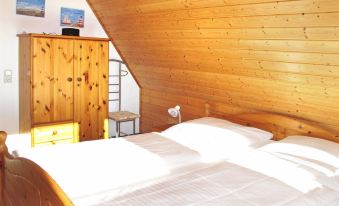 If required, one-time transfer from/to Dorum train station (registration required). Child friendly resort "Cuxland Ferienpark". In the district of Dorum-Neufeld 6 km from the centre of Dorum, 20 km from the centre of Cuxhaven, 20 km from the centre of Bremerhaven, 800 m from the sea. For shared use: children's playground. In the complex: restaurant, bar, sauna (extra). Shopping facilities, boutique, washing machine (extra), tumble dryer (for shared use, extra). Central parking spaces. Shop 800 m, supermarket 6 km, bus stop 150 m, grass beach, outdoor swimming pool, indoor swimming pool 800 m. Marina 800 m, golf course (18 hole) 12 km, minigolf 800 m. Please note: suitable for families. Loading and unloading of baggage is possible at the holiday house. The photograph shows a typical example. All houses/apartments are individually designed/furnished. "Strandpirat", 3-room house 62 m2 on 2 levels. Cosy furnishings: living/dining room with dining table and satellite TV. Exit to the terrace. Open kitchen (4 hot plates, oven, toaster, kettle, electric coffee machine). Shower/WC. Upper floor: 1 room with 1 double bed. 1 room with 2 beds. Gas heating. Lawn. Terrace furniture. Facilities: children's high chair, baby cot. Please note: maximum 1 pet/ dog allowed. Smoke alarm, fire extinguisher. The property is one of a type of property or apartment.