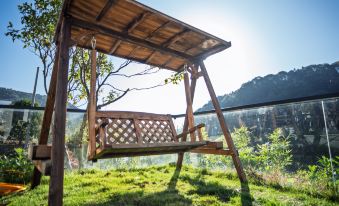 Push open the carved wooden door, and you’ll see a 20-square-meter koi pond glistening in the light, with a swing swaying gently nearby. Sit by the tea table, brew a pot of local farm tea, and watch mist drift over distant mountains—this is the poetic daily life the homestay offers. The tea room is open for free all day, where you can enjoy Longjing, Wu Yuan Green Tea, or Qimen Black Tea to your heart’s content. Each room has a private viewing balcony; wake up to bird songs in the morning, and open the window to see green mountains and cooking smoke.