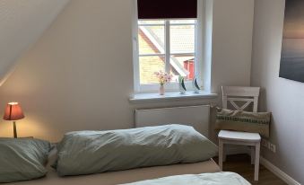 Sehr schöne, geschmackvoll eingerichtete Wohnung in schönem Wohngebiet etwas außerhalb von Wyk. Schöne Raumaufteilung Eine gut ausgestattete Küche. Garten mit sehr schöner Bepflanzung und Strandkorb zur Mitbenutzung. Würden wir direkt wieder mieten