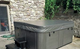 - The hot tub is open year-round and available for guest use. This 6-seater hot tub offers Bluetooth audio, adjustable massaging jets, LED lighting, and drink holders to enhance your relaxation.