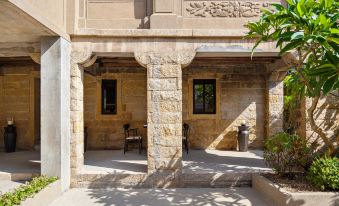 This old building, with a century-old history, now has a new modern appearance in a balanced combination of old and new, continuing its history. The antique exterior walls, the unique blue exterior windows of GulangYu, old wood, stones, and the warm lights that illuminate the space form a warm greeting: Welcome home.