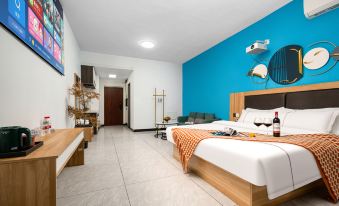 房間面積很大,乾淨衞生,公寓式酒店,裝修風格讓人很舒服,房間獨立性很好,比普通酒店強太多了,密碼鎖讓人安全感十足,特別是離胖東來金滙店就幾步距離,沒事溜達一下,蹲守胖東來啤酒月餅超級方便。而且距離天使城店也就千米距離,位置滿分。