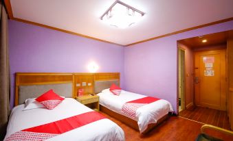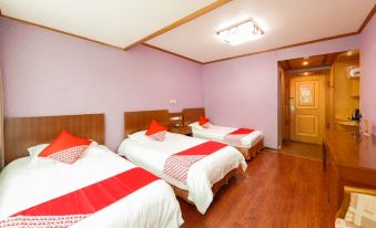 與朋友兩家人定了兩間房,因為疏忽把錯把大床房當成標準間定了,聯繫老闆後,老闆幫忙給調整預留了標準間,訂房間的時候沒有早餐,但老闆仍舊熱情的告訴早晨七點半可以來二樓餐廳免費吃早餐,給老闆點贊。