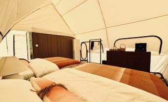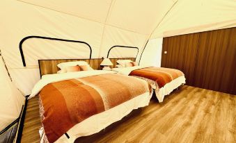 十分滿意的一次體驗。感覺就想回了家。先説整體環境,電視劇有風的地方已經有體現,確實美不勝收全木結構的馬事兒咖啡館,還有住宿乾淨衞生也很舒適的露營酒店,都讓人十分滿意。老闆人很不錯,來回接送。然後講下住宿,硬件沒問題,衞浴用品也可以,我們是晚上入住,下過雨,身上感覺有點潤,所以直接打開空調,電熱毯等除濕設備,一會兒就褪去了身上的潮濕感。我們一家三口,定的雙床,很寬敞舒適,精油,水壺等都還不錯。從帳篷裏看出去事業都很ok,門口還有個小露台,有小桌子可以小坐一會兒。順便説一下,賬外雖然有飛蛾,但沒有叮人的蚊子。再説服務,這裏餐食很不錯,都是現做的,強烈推薦。