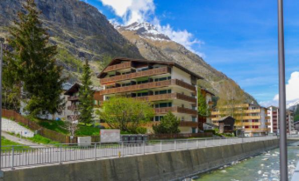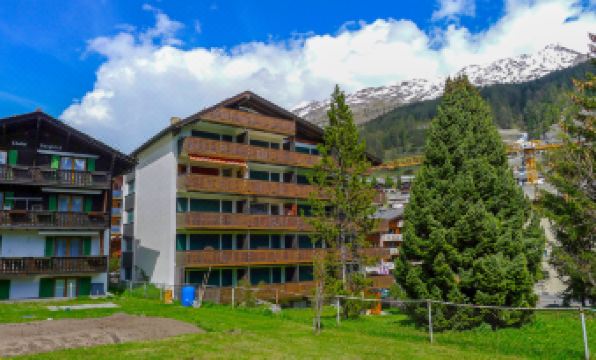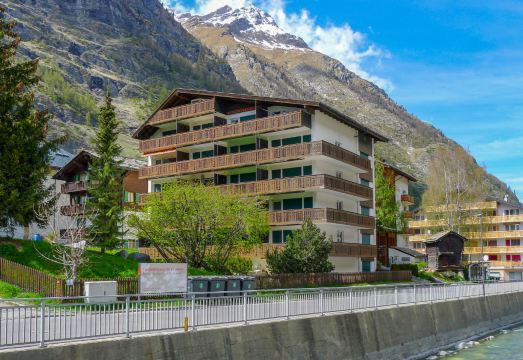 Cosy, simple apartment block "Matten (Utoring)". In the district of untere MAtten, 400 m from the centre, in a central, quiet, sunny position, south facing position. In the house: reception, lift, storage room for skis, central heating system. Supermarket, restaurant 300 m, bakery, bicycle rental 400 m, 7 minute walk to the centre, bus stop "Wiestibrücke" 20 m, railway station "Bahnhof Zermatt" 400 m. Mountain railway 200 m, ski rental 30 m, ski bus stop 10 m, ski school, children's ski school 750 m. Please note: Additional accommodations can be booked. 2-room apartment 80 m2 on 1st floor, south facing position. Living/dining room with 1 double bed (1 x 160 cm, length 200 cm), TV. 1 room with 3 wall-trunk beds. Kitchen (oven, dishwasher, 4 ceramic glass hob hotplates, electric coffee machine). Bath/WC. Balcony. Terrace furniture. View of the Matterhorn. Facilities: Internet (WiFi, free). Please note: non-smokers only.