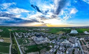 If not for the snow on the Qilian Mountains, one might mistake Zhangye for the south of the Yangtze River. Zhangye, located in the northwest, boasts the advantages of the Qilian Mountains and the Heihe Wetlands. After a thousand years of nurturing, it has created a grand and refreshing three-dimensional landscape. The Wangshan Xiaozhu Hotel is nestled within this three-dimensional landscape, with white walls and green tiles, hidden away at the foot of the majestic Qilian Mountains.The hotel's unique design style blends perfectly with the imposing Qilian Mountains, with snowscapes, mountain views, garden scenes, moonlit nights, and interactive rendering; the azure sky and snow-white mountains make this villa-style hotel even more charming, leaving visitors reluctant to leave and wandering under the blue sky and white clouds at the foot of the mountains.The hotel is adjacent to the west exit of the expressway and the high-speed railway station in Zhangye. Wangshan Xiaozhu has meticulously crafted nine villas with distinct styles and main building lake view room types (loft), which are either luxurious, elegant, or comfortable—there's always one that suits your family. The natural and pleasant scenery of the hotel, cozy arrangements, and warm and attentive service will help you let go of your worries and return to the simplest purity as if you were part of the snowy mountains. Have a dialogue with the mountains and cherish this pure white, gaining peace and beauty.The hotel adheres to a management philosophy centered on customers, customization, and service. Every item and every landscape in the hotel are exquisite; every smile, greeting, and service is thoughtful and considerate.