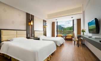 酒店應該是營業多年,裏面的裝修配套都比較陳舊,但床單、被子都相對乾淨整潔,推窗能見山,停車場比較大,有充電樁,對自駕電車的朋友很方便,早餐品種選擇不多,能吃飽。離黃姚古鎮很近,過馬路就是了,早上七點半前可以偷偷免票進園,但酒店不會跟你説,衹會跟你説可以幫買優惠票。