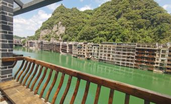 房間很好看,個人感覺比照片好看,夜景特別美,就是可惜沒拍上,太晚了會關燈,陽台看對面全是紅燈籠,白天起來就能看見江超級綠,店主也特別好,超級認真的服務態度,而且特別熱情,唯一一點就是沒有電梯,所以行李重的寶寶可能需要尋求一下店家幫助,反正除了這點,我覺得都特別好,一次性浴巾洗臉巾都有,超級全,反正個人感覺很棒,就在古鎮裏面,吃飯走一段路就到