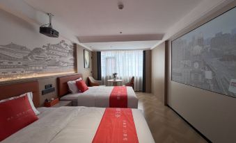 這家酒店新裝修的,房間漂亮温馨,環境乾淨整潔,床品毛巾浴巾很柔軟,天貓精靈語音全屋智能控制,有自助早餐,自做的炸醬麪很好吃。有停車場。前台服務周到,還熱情的推薦了周邊的旅遊景點。總之入住感覺非常好,強烈推薦給需要的朋友。必須點贊👍🏻