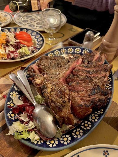This is a restaurant near the hotel recommended by the hotel proprietress. It is within walking distance and near the train station. The storefront is very small. Once you enter, you will find that it is full of guests. Each table is very crowded and people are very close to each other. Fortunately, we don’t understand Italian and they don’t understand Chinese, so there is no problem of poor privacy, hahahaha~~ There are more locals in the store. Anyway, there are almost no Asian tourists, and there are large tables of family dinners. The waiter will give priority to recommending red wine. It seems that there are quite a lot of people drinking. We ordered steak, pasta and tiramisu, the "Florentine three-piece set". The taste is good and the dishes are quite safe. The waiter will also recommend the size of the steak according to your number, which is quite good. Communication is smooth, ordering is smooth, there are not many waiters, and they all feel busy.