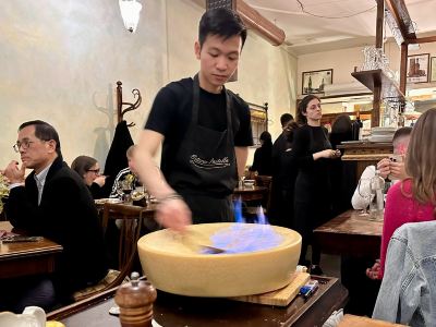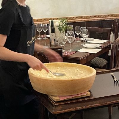 This was the best restaurant experience we had in Italy. The cheese wheel pasta was amazing. The service was just as great. We had 5 or 6 different people wait on our table with food, drinks, water etc.