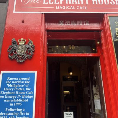 The Elephant Cafe in Edinburgh is also known as the Magic Cafe. "Birthplace of Harry Potter" is written under the right window. It was here that the impoverished J.K. Rowling ordered a cup of coffee every day and wrote the early Harry Potter while looking at the Edinburgh street scene outside the window.