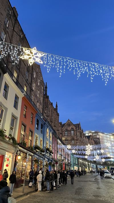 Edinburgh has a rare sunny sky in winter. Take a walk and have afternoon tea at the Elephant Cafe in Harry Potter. It feels like time has slowed down. This cafe is famous because of Harry Potter.
