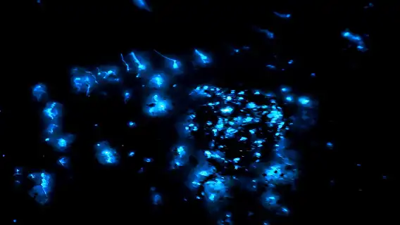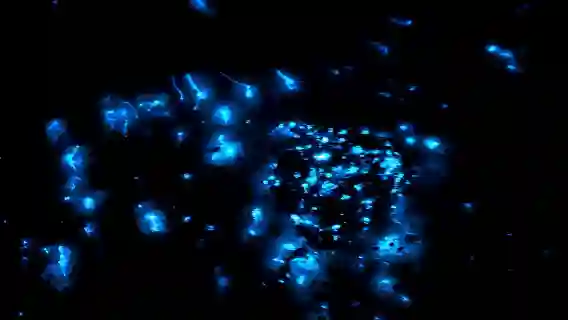 See fireflies light up the night sky and the blue tears phenomenon with sunset at the beach