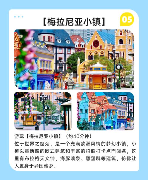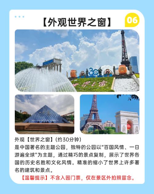 Specially arranged to ride across the Shenzhen-Zhongshan Link, a magnificent sea-crossing bridge; visit the dreamy European-style town of Melania; admire the exterior of Window of the World for photo opportunities.