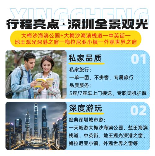 Private small group pick-up/drop-off|Shenzhen-Zhongshan Link + Meridian View Center + Dameisha Beach + Chung Ying Street One-Day Tour