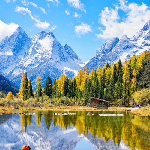 Chengdu Siguniang Mountain, Shuangqiao Valley, Maobiliang - Chinese-speaking group tour for one day, featuring beautiful snow-capped mountains and lakes.