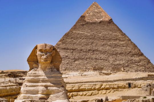 ▲ The Pyramid of Khafre is the second largest pyramid in the Giza pyramid complex, surpassed only by the Great Pyramid of Giza. It is one of the few pyramids that still retains its original limestone casing at the apex. Though weathered, its summit provides a glimpse of the pyramid's original appearance to future generations.