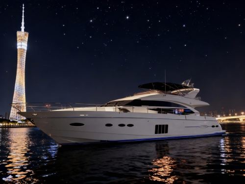 Guangzhou Yacht Charter Night Cruise on the Pearl River (Taikoo Wharf) - Experience the British Princess 68ft luxury flybridge yacht for an exclusive night cruise along the Pearl River. Marvel at the captivating night views of the Canton Tower. Perfect for birthdays, proposals, business receptions, team-building events, and various high-end yacht charter needs.