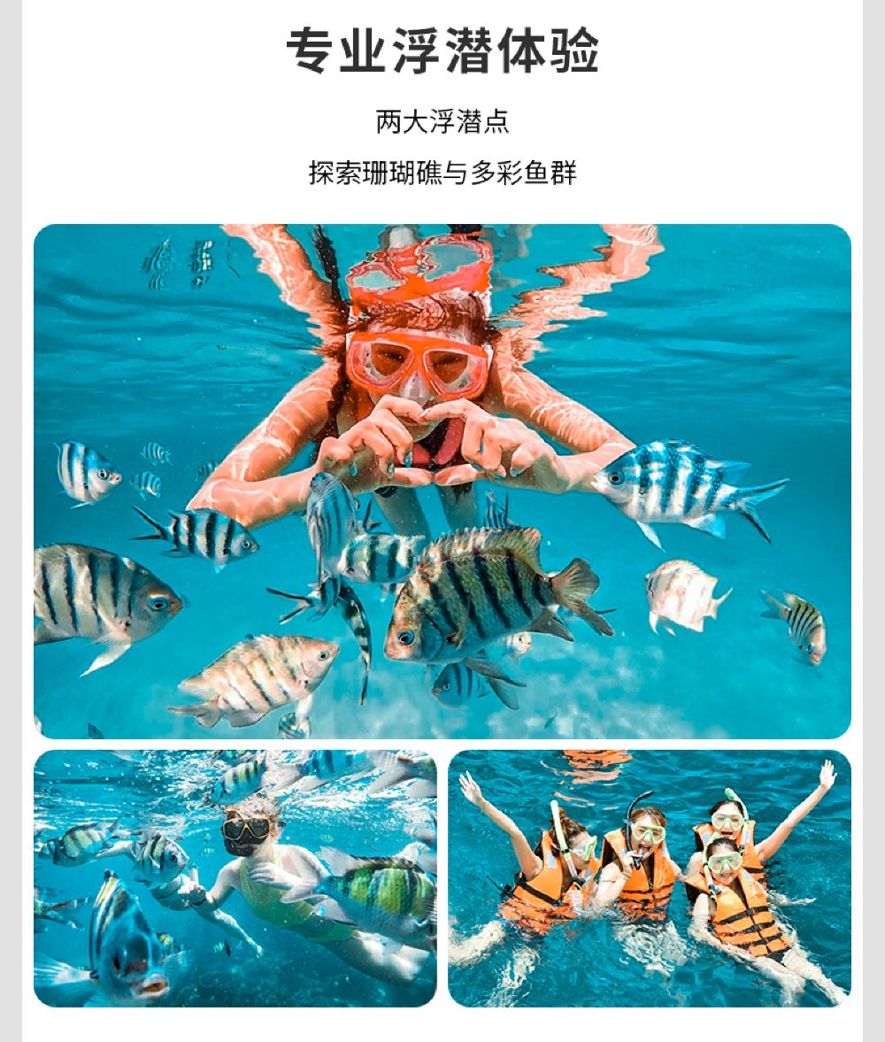 Snorkeling around the island, strolling on the sandy beach for photos, endless fun awaits.