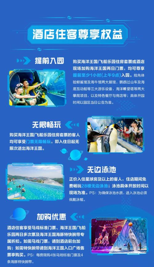 Package includes Ocean Kingdom/Spaceship Park admission ticket with unlimited visits for 2 days